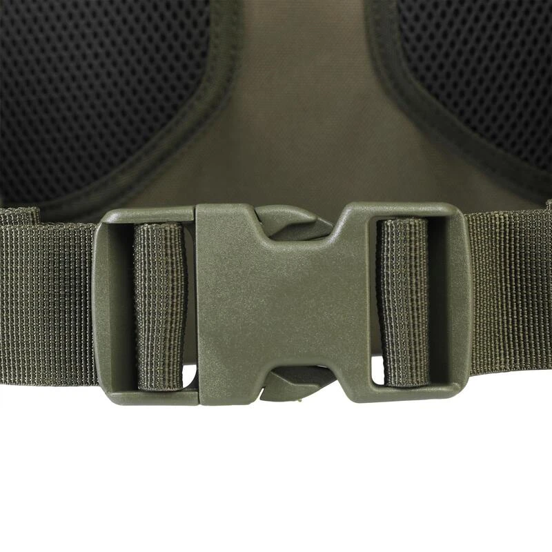 Ceinture réglable avec mousse Polyester de 10 mm et sangle de serrage poitrine. Bretelles fines pour permettre le tir avec le port du sac à dos, l’épaulement conservant toutes ses sensations.