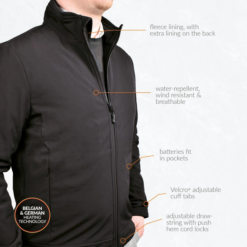 Veste Softshell chauffante – Coupe Classique pour homme – avec doublure polaire extra chaude – Noir – Rapid batterie